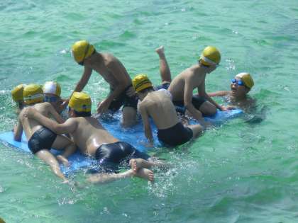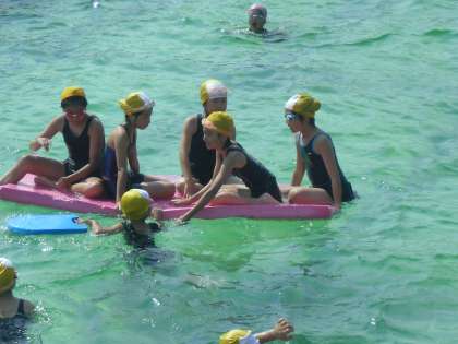 5年生は体育で水泳・泳力調査を行いました。泳力調査の後は少し自由時間をとり、浮き島などで遊びました。