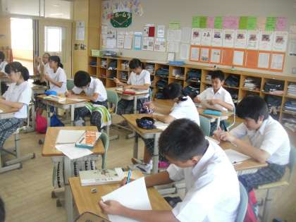 8年生は国語で「想像する言葉」という学習をしています。今日は創作した詩を発表しました。