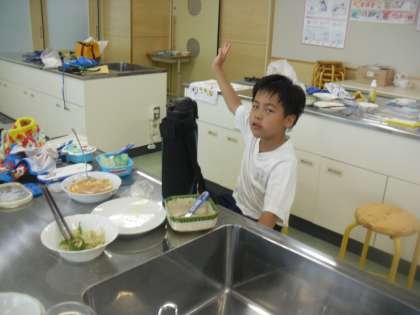 小中CD組は調理実習を行い、出来上がったものを昼食にしました。