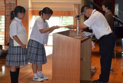沼津文園第217号の表彰を行いました。各学年1名ずつ選出されました。おめでとうございます。