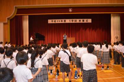 3人の児童生徒が話した後に校歌を斉唱しました。