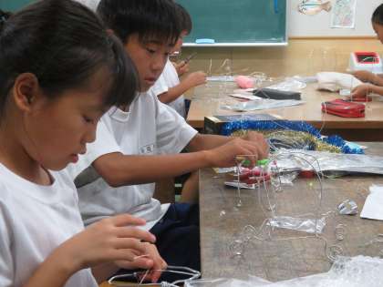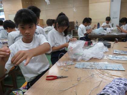 「立ち上がれマイライン」です。針金を使って自由に形を作り、オリジナル作品を制作中です。出来上がりが楽しみですね。
