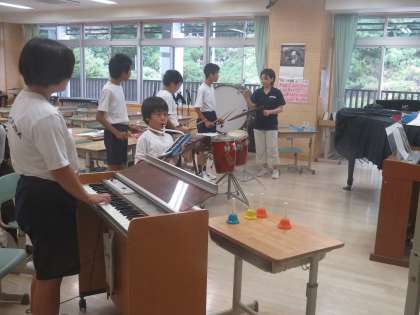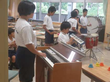 小C,中C,Dは合同音楽で、黒潮祭ステージの部で演奏する曲を練習しています。楽しみですね。