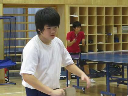 ○卓球部です。各自が、卓球台を使用して練習可能です。恵まれている環境で頑張っています。