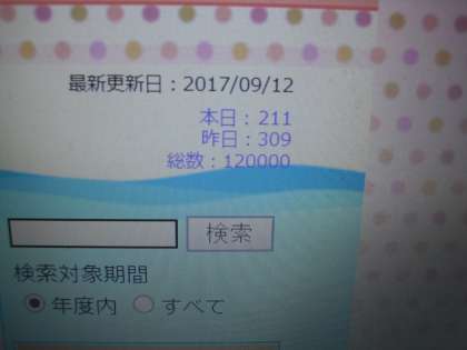 さて、昨年4月19日より日々のアクセス(閲覧)数をカウントする機能を掲示しましたが、本日ちょうど総数が120000を達成することができました。