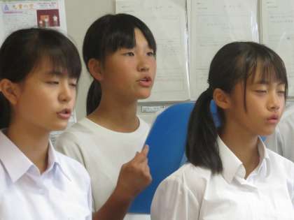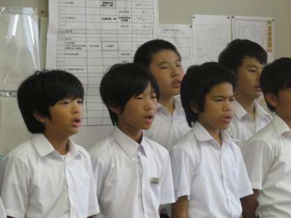 7年生の合唱練習です。きれいなハーモニーが聞こえてきます。