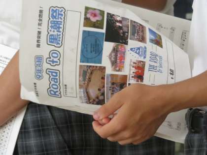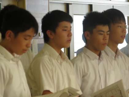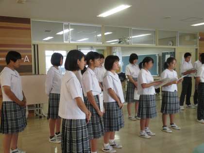 9年生の合唱練習です。楽譜の表紙には、合唱に対する思いがたくさん入っています。