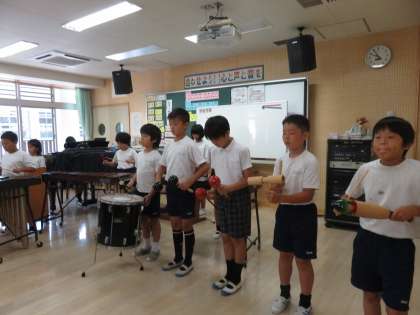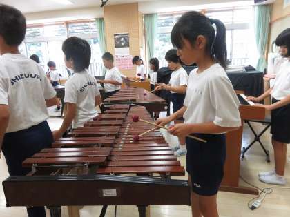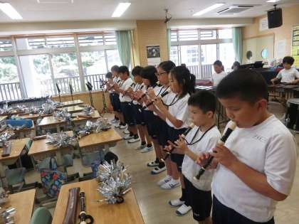黒潮祭ステージの部で発表する「ビリーブ」「いろんな木の実」を練習しています。麻里子先生の指揮に集中しています。