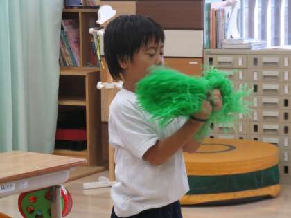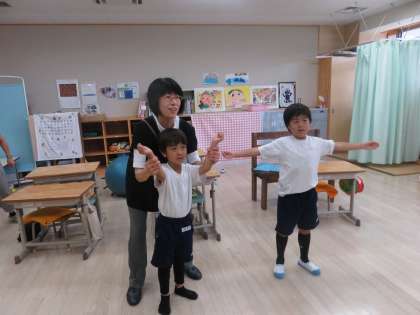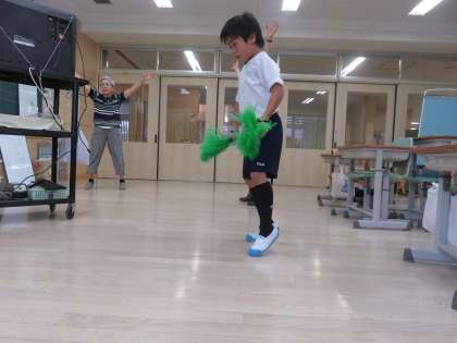 黒潮祭体育の部のダンスを練習しています。映像をみながら練習しています。なかなか動きが早いです。