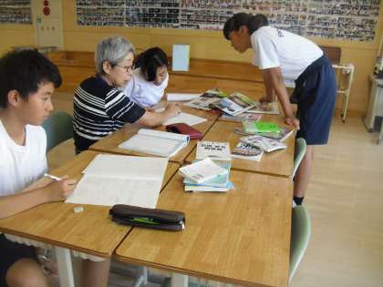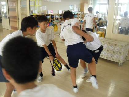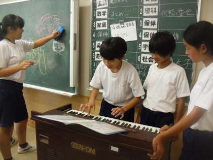 昼休みの様子です。友達と一緒にオルガンを弾いたり、相撲をとったりしています。勉強会を行っているグループも見つけました。