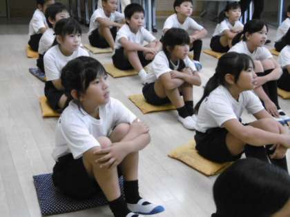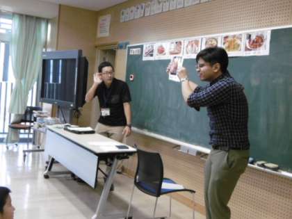 食べ物についての言い方の学習が始まりました。どの子も真剣に先生の英語を聞き、しっかり発音しています。この後は、3Aの人気の食べ物を見つける活動を行いました。