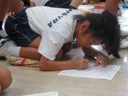 3Aの人気食べ物を調べる活動を通して、英語を使ってコミュニケーションすることを楽しんでいます。振り返りでも「今日は楽しく英語をたくさん使うことができた」と…。