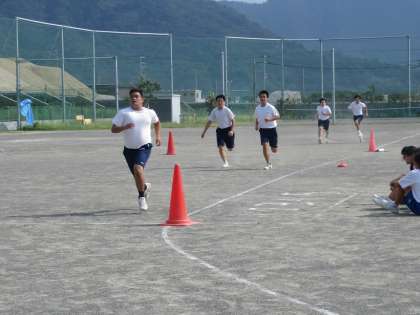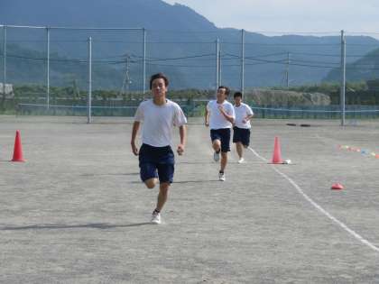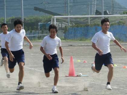 大志部はグラウンドで、徒競走の練習です。9年生はさすが見ごたえがあります。砂煙が経つほど速いです。