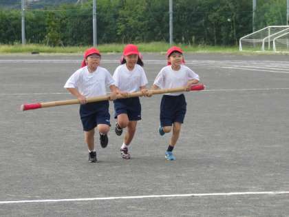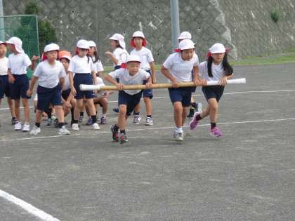 3年生は台風の目の練習です。紅白別れて頑張っています。