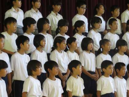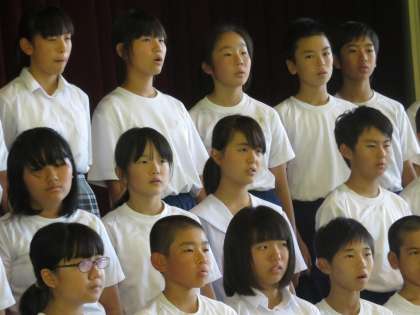 5,6,7年生の立志部は、体育館で合同音楽です。いい歌声が聞こえてきます。ステージの部が楽しみです。