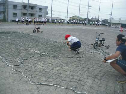 障害物リレー練習を行いました。今日は初志部のみ実際にやってみました。