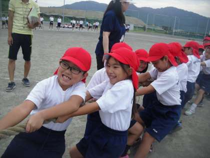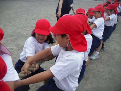 綱引きの練習です。紅組の様子です。