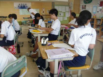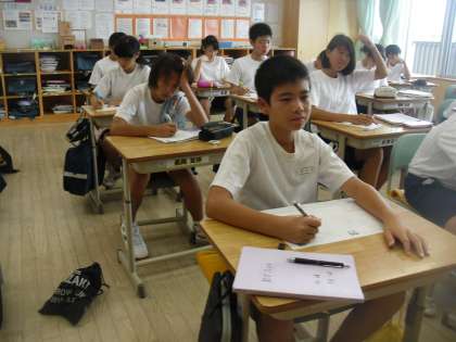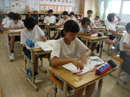 8年生は数学で1次関数を学習しています。生徒はグラフを書いて、問題を解いていました。