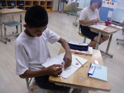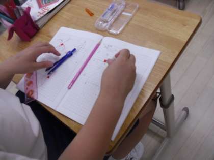 中C組は数学の学習をしていました。コンパスを使って垂線を丁寧に書いていました。