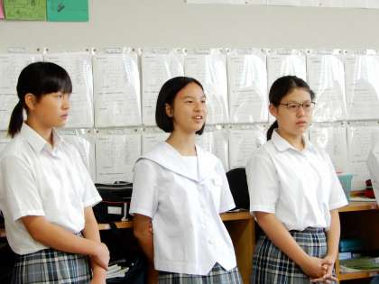 毎朝頑張っている7年生の合唱練習です。合唱後に生徒同士で話し合っています。