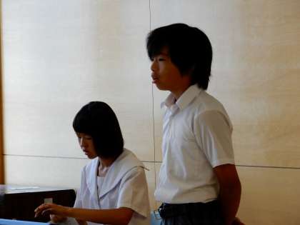 指揮者から合唱についてコメントがあり、自分たちで合唱を作り上げています。
