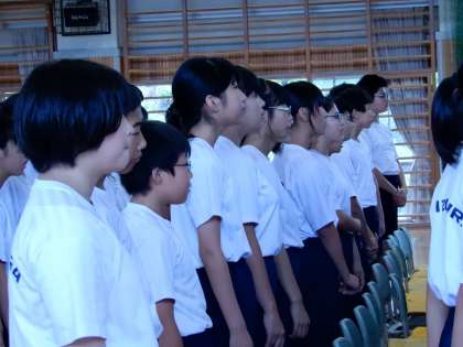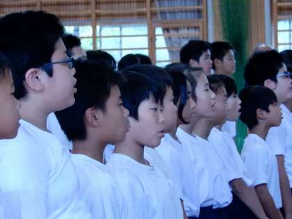 1年生から9年生までの合唱は、迫力があります。一貫校の児童生徒の校歌を楽しみにしてください。