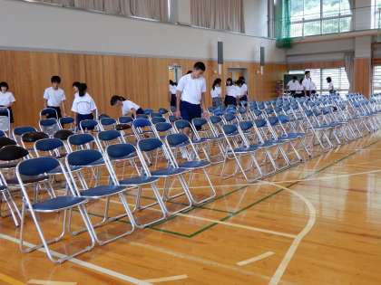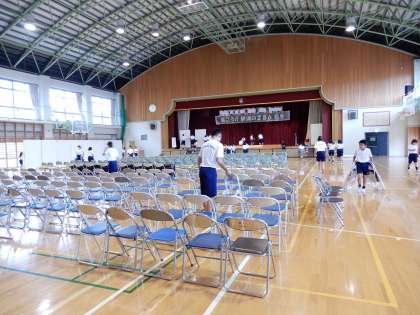 体育館の中も自分から進んで仕事をしています。黒潮祭に向けてみんな「心が一つ」です。ありがとうございます。