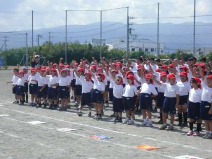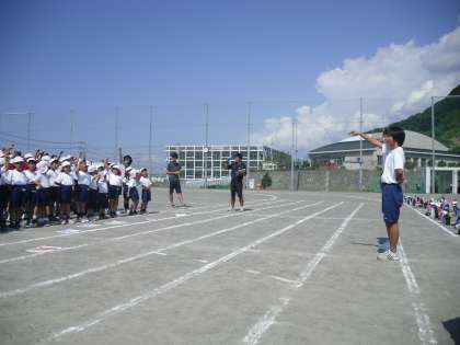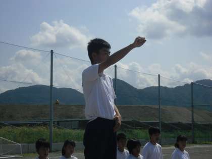 応援練習です。紅白の応援団長・総団長の呼びかけに、力強い声が返ってきました。