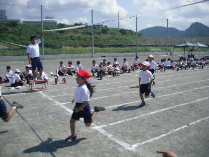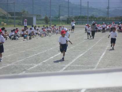 徒競走の練習です。1年生の練習では、一人ずつ紹介がありました。