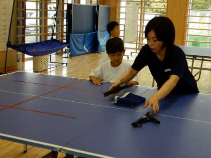 窓を開けたり、卓球台にネットの準備も自分たちでやります。