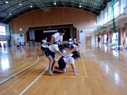体育館で立志部合同体育です。