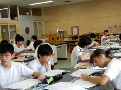 生物同士のつながりを考えよう。学校全体は黒潮祭一色ですが、授業の雰囲気はいつもと変わりません。さすが、9年生です。