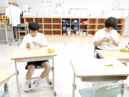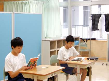7年生が立志部体育に参加している時間ですが、8年生は芹澤先生と編み物を練習中です。
