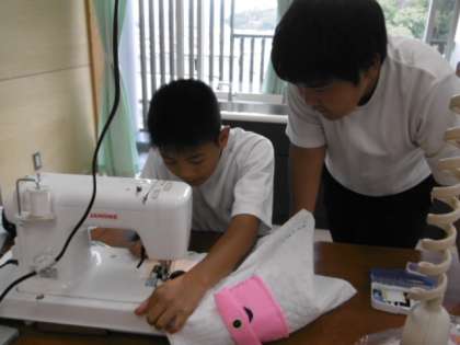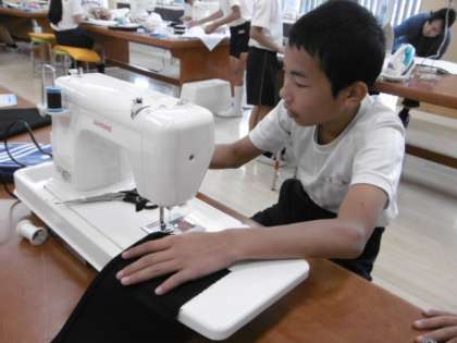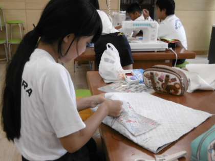 トートバッグを作っています。手縫いをしたりミシンを使ったり…。どんなトートバッグができるか楽しみです。
