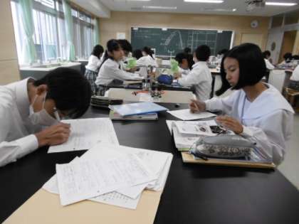 学習問題は「沸点の違いを利用して赤ワインからエタノールを取り出すことができるのか」です。グループで活発に話し合いをしています。