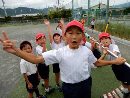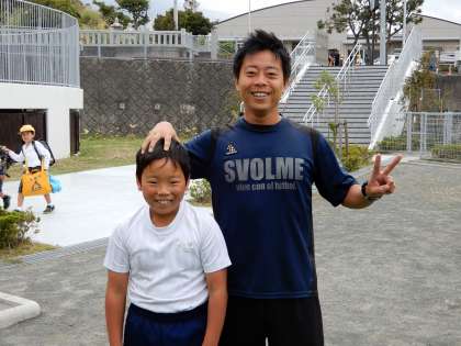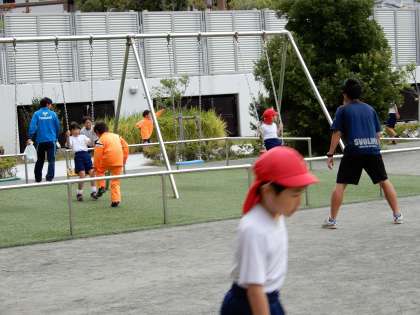 初志部と5年生が、元気よくプレイグラウンドで遊んでいます。