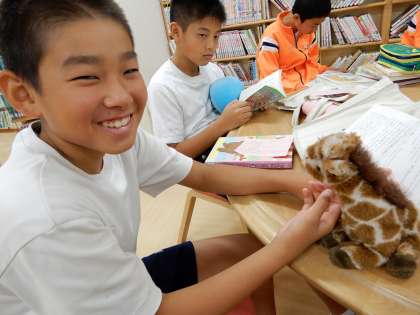 図書館で6年生が読書をしています。