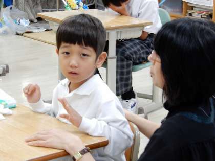 朝の会は、子どもたちが司会で一日の予定等を確認します。