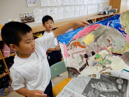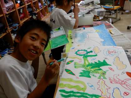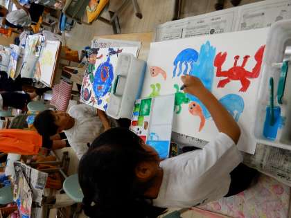 絵の具を塗り終えて、たまごを張り付けるところまで頑張ります。みんな絵が上手ですね。完成が楽しみです。