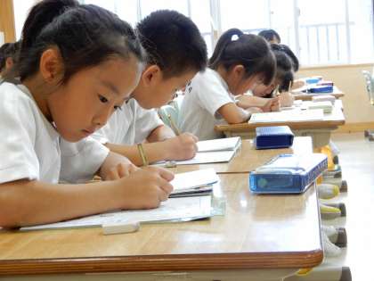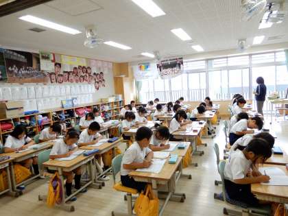 はがきの書き方を学習しています。みんな姿勢も素晴らしいです。