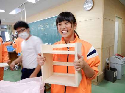エレガントスプルスで本立てや、CDラック、ティッシュラック、マルチラックなどを制作しています、その制作する過程で様々な部品加工の技術を体験しています。