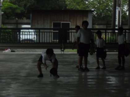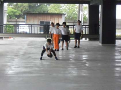 野球クラブでは、元気な声を響かせ、守備練習をしています。