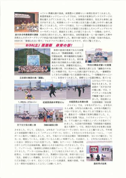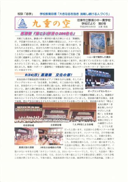 本日、学校だより「九重の空」第6号をご家庭で配布させていただきました。黒潮祭での子どもたちの活躍の様子が掲載されています。