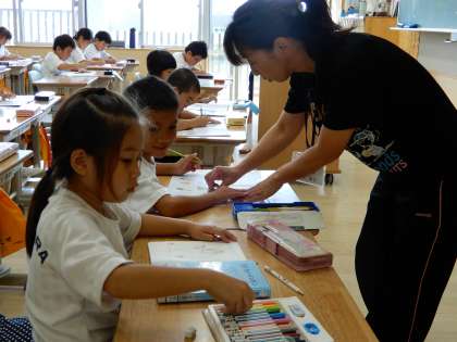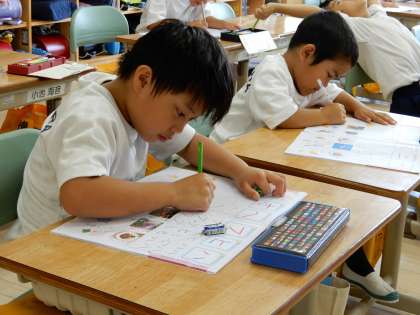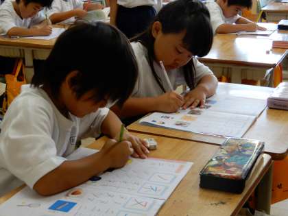 1年生は国語でカタカナの練習をしていました。みんな丁寧に書写していました。