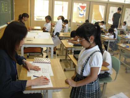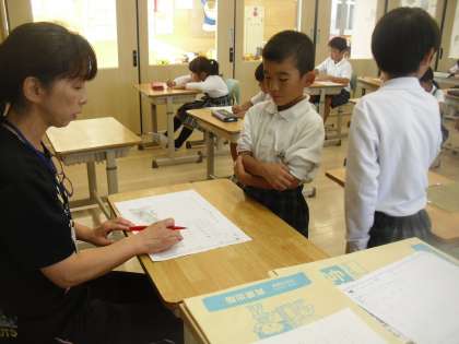 今日の放課後学習支援教室くろしお塾では、ノートに横書きで書く練習をしました。今日は放課後学習支援の先生方と教頭先生がまるつけをしてくださいました。