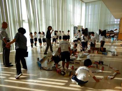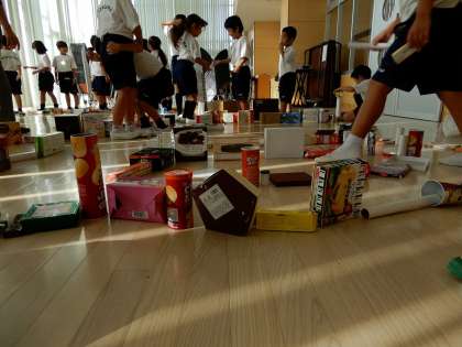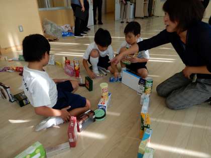 算数で使用した様々な箱で、いろいろなものを作りました。