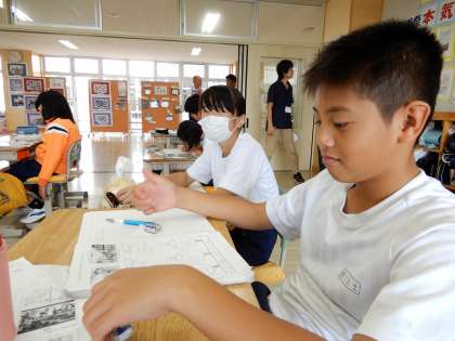 子どもたちは、2枚の写真を比較した気付きを意欲的に発表し、最後にキーワード「進化、時代が進んで、外国人が増えた、上品、和式から洋式化など」を書いていました。6年生のみなさんありがとうございました。