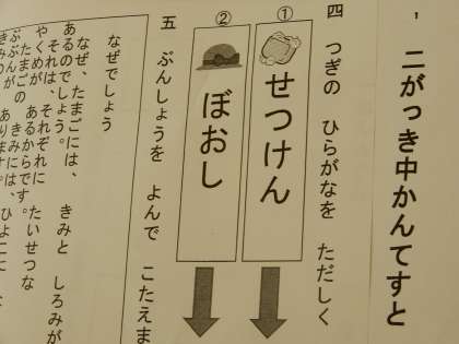 中間テストです。最初の問題「次のひらがなを正しく書きましょう」から始まりました。