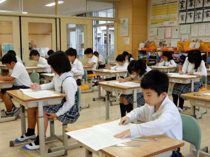 中間テストです。漢字の「桜がちる」「神社のおふだ」書けましたか。