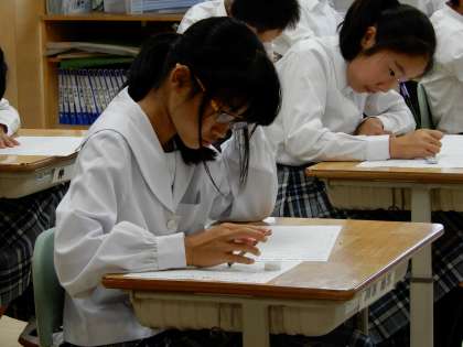 中間テストです。「びょうしんのある時計」漢字の勉強大切です。書きましたか。
